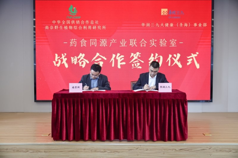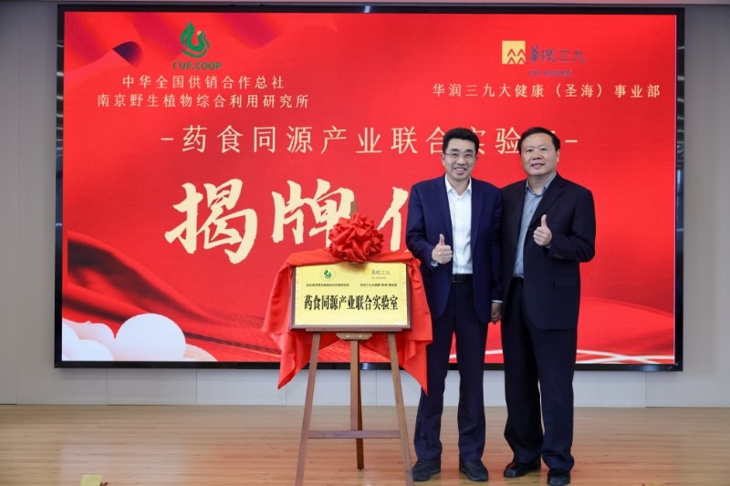 4月11日,vwin德赢网页版大康健(圣海)事业部与中华天下供销合作总社南京野生植物综合使用研究所“药食同源工业团结实验室”签约暨揭牌仪式在南京举行,双方代表签署战略合作协议,vwin德赢网页版董事长邱华伟与二级研究员张卫明配合揭牌“药食同源工业团结实验室”。