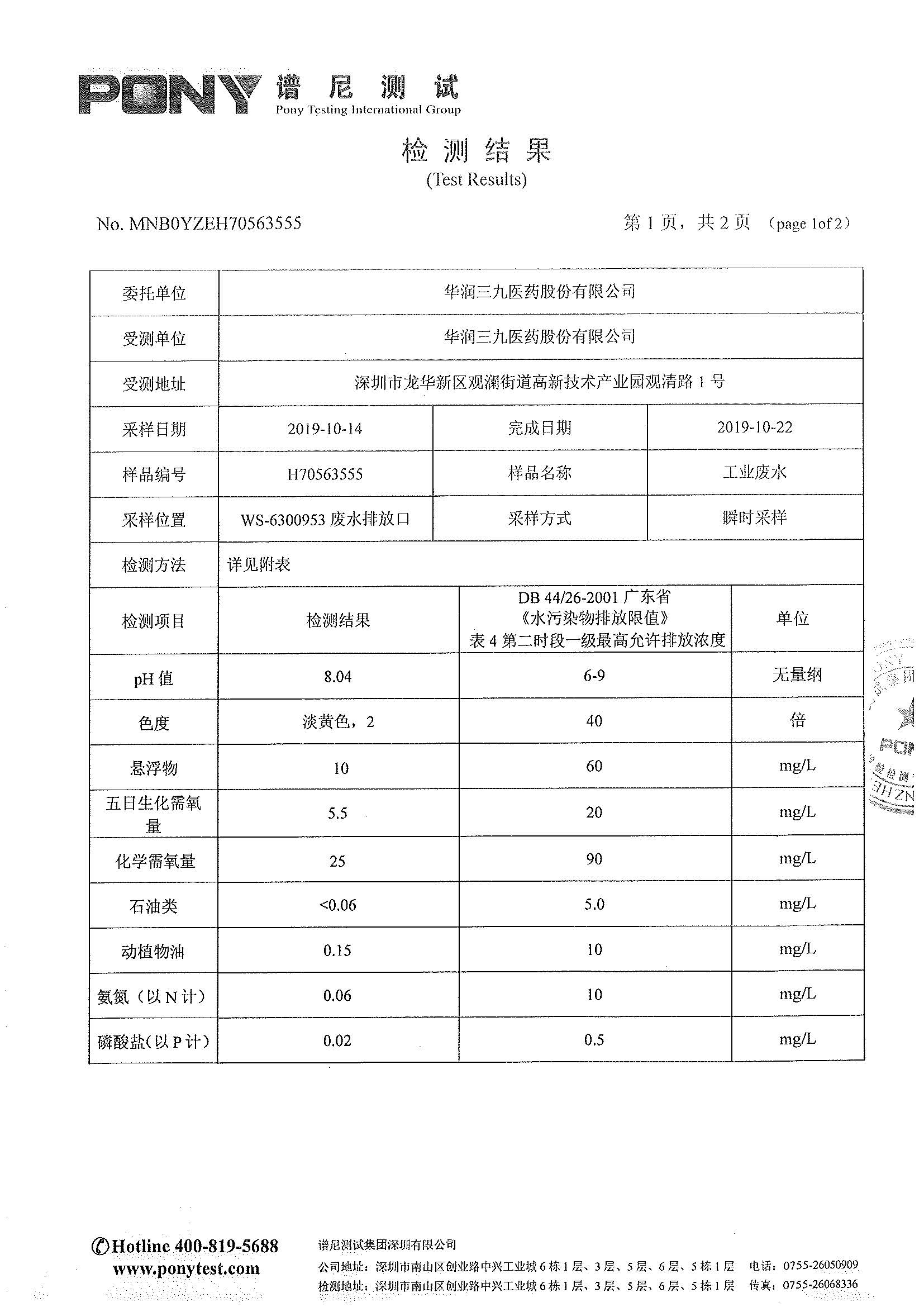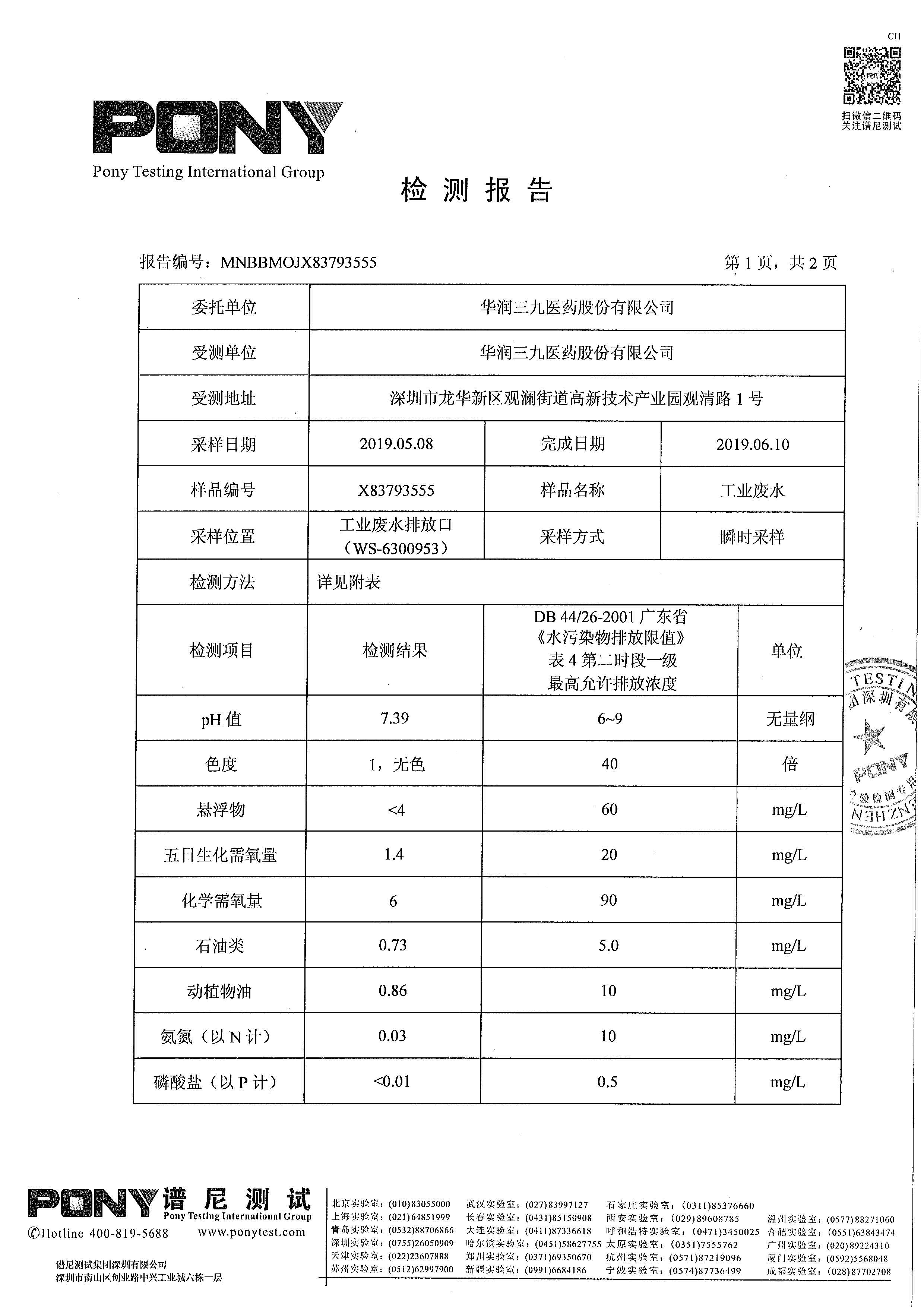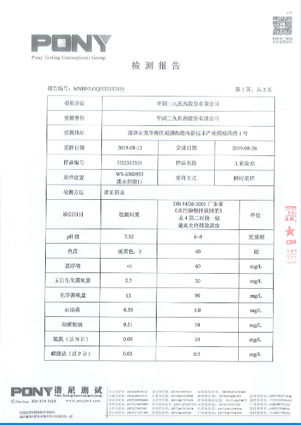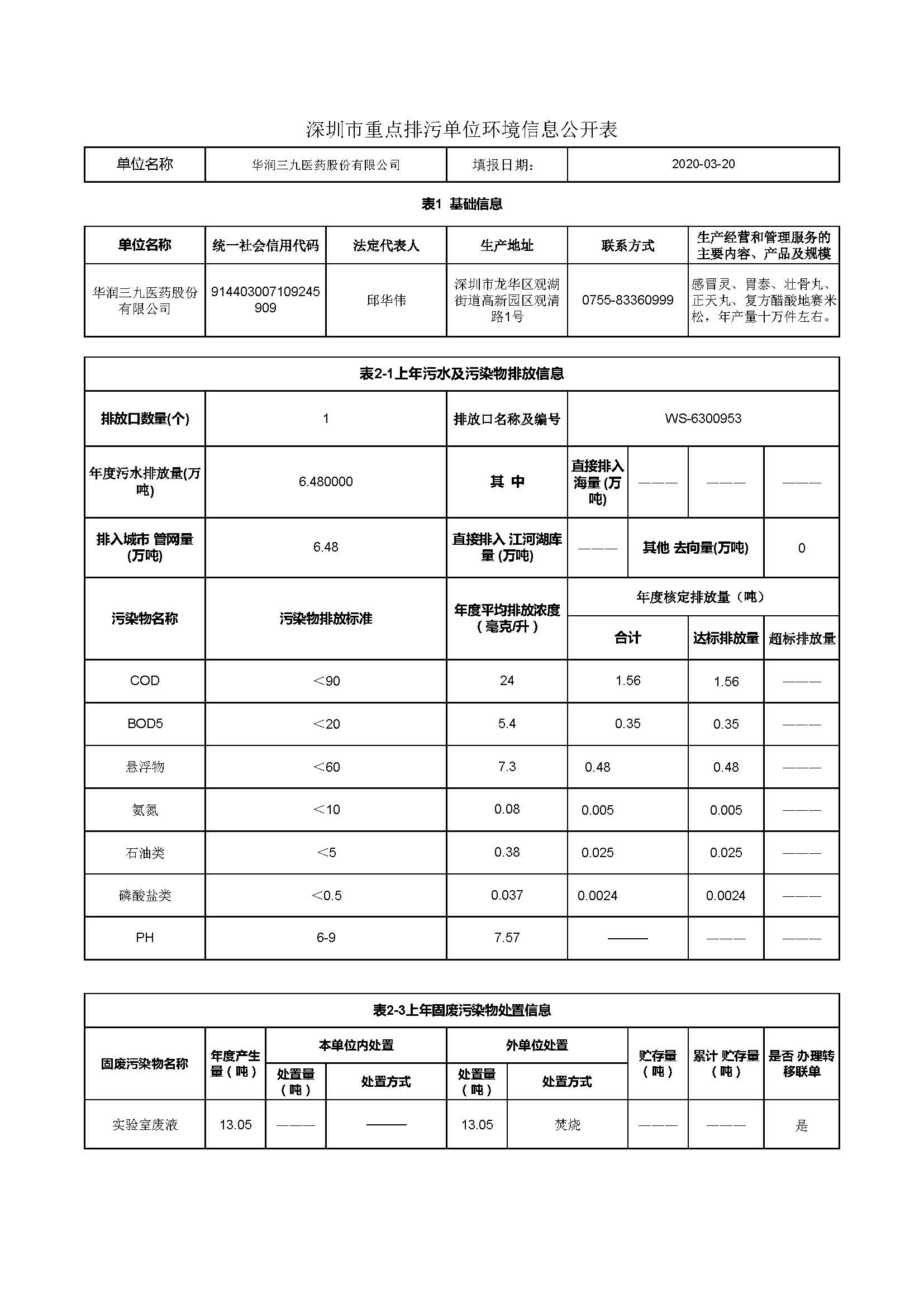 vwin德赢网页版医药观澜基地2019年环保信息果真