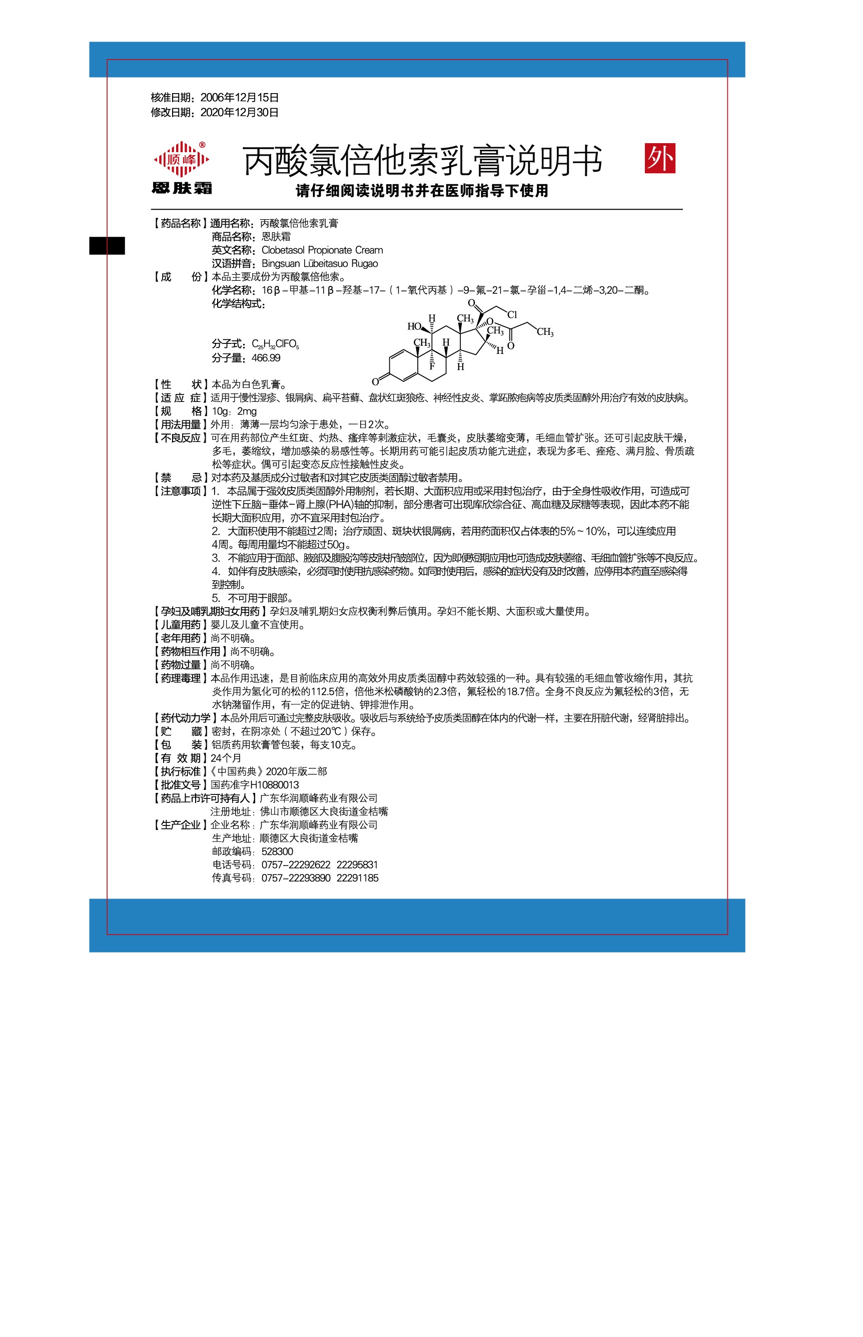 天下首创使用皮肤渗透增进剂——氮酮的国家四类新药。用于慢性湿疹、银屑病、扁平苔藓、盘状红斑狼疮、神经性皮炎、掌跖脓疱病等皮质类固醇外用治疗有用的皮肤病的短期治疗。荣获“农业部优质产品”。