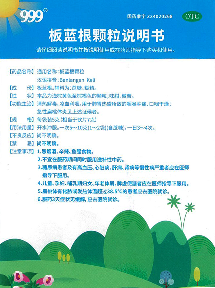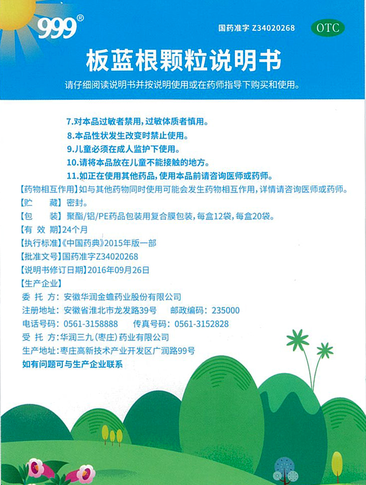 板蓝根颗粒说明书(正面)