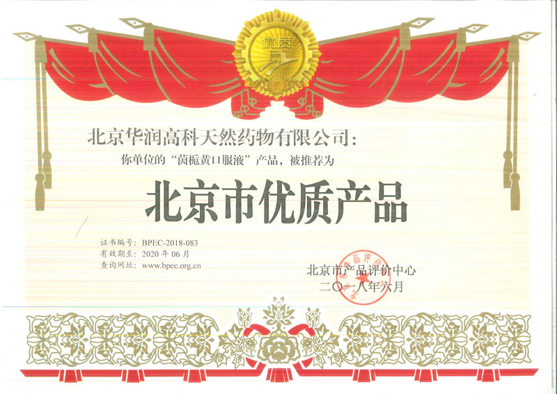 克日,华润高科茵栀黄口服液、舒血宁注射液、银杏叶酊等三个药品被北京市产品评价中心推荐为“北京市优质产品”。