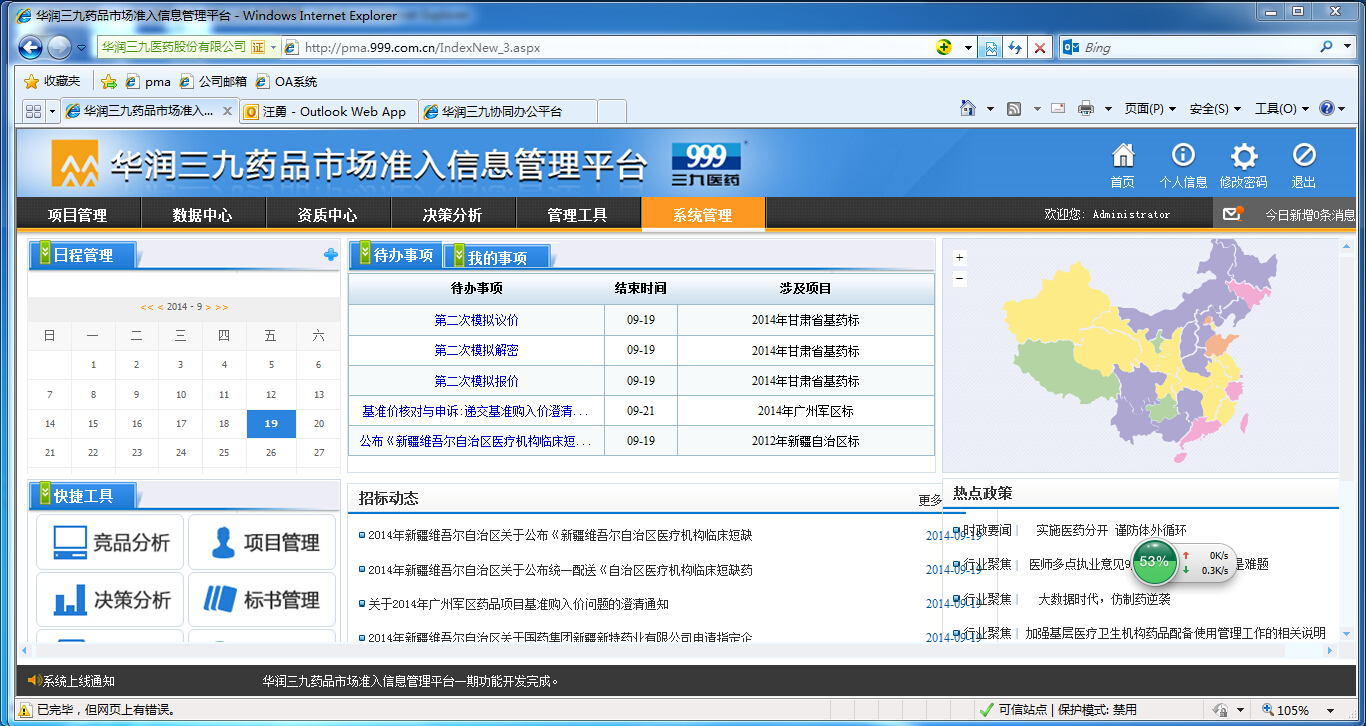 ÕбêÏîÄ¿¹ÜÀíÄ£¿éÕûºÏÁ˱êÊé½â¶Á¡¢±êÊé×Ô¶¯ÌìÉú¡¢ÏÞ¼ÛÄ£×Ó¡¢Ä£ÄâÆÀ·Ö¡¢ÅäË͹ÜÀí¡¢×ÊÖÊÖ¤ÕÕ¹ÜÀíµÈ¹ÜÀí¹¤¾ß£¬ÄÜ×ÊÖú¸÷ÓªÒµÏ߹淶¹ÜÀíÕбêÊÂÇ飬Ìá¸ß×űêÊÂÇéµÄЧÂÊ£»Êг¡×¼Èë´óÊý¾Ýƽ̨Ôòº­¸ÇÁËÒ½±£¡¢»ùÒ©¡¢Îï¼Û¡¢ÕбêµÈÒ©Æ·Êг¡×¼Èë»·½ÚµÄËùÓÐÊý¾Ý£¬¸¨ÒÔ²¿·ÖÆÊÎö¾öÒ鹤¾ß£¬ÎªÆ¬ÇøÍ¶±êÔðÈÎÈË×¼È·ÕÆÎÕ±¾¾ºÆ·µÄÓÅÁÓÊÆ£¬ÒÔ¼°Öƶ©±¾Æ·Í¶±êÕ½ÂÔÌṩÊý¾ÝÖ§³ÖºÍÆÊÎö¾öÒ鹤¾ß¡£ÏµÍ³ÄÜΪ¹«Ë¾¸÷ÓªÒµÏß¼ÓÈë¸÷ʡҩƷÕÐͶ±êÌṩÊý¾ÝÖ§³Ö¡¢Õ½ÂÔÆÊÎöºÍÄڿرê×¼¡££¨³Â¶¬ÄÝ£©