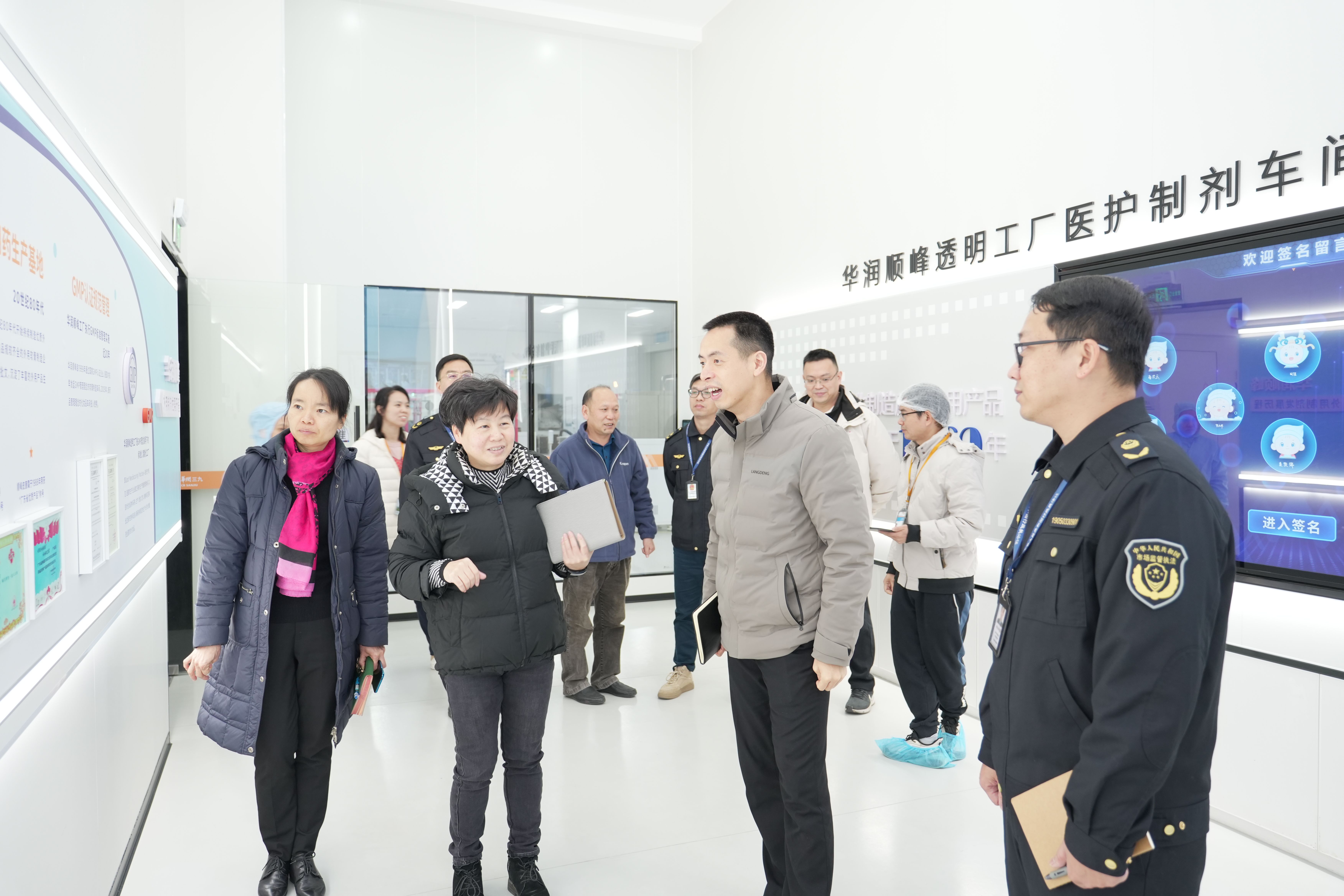 2024年1月26日,顺德区副区长陈振浩、区市场监视管理局分担药化科向导、药化科认真人一行到访我公司指导药品清静生产事情。