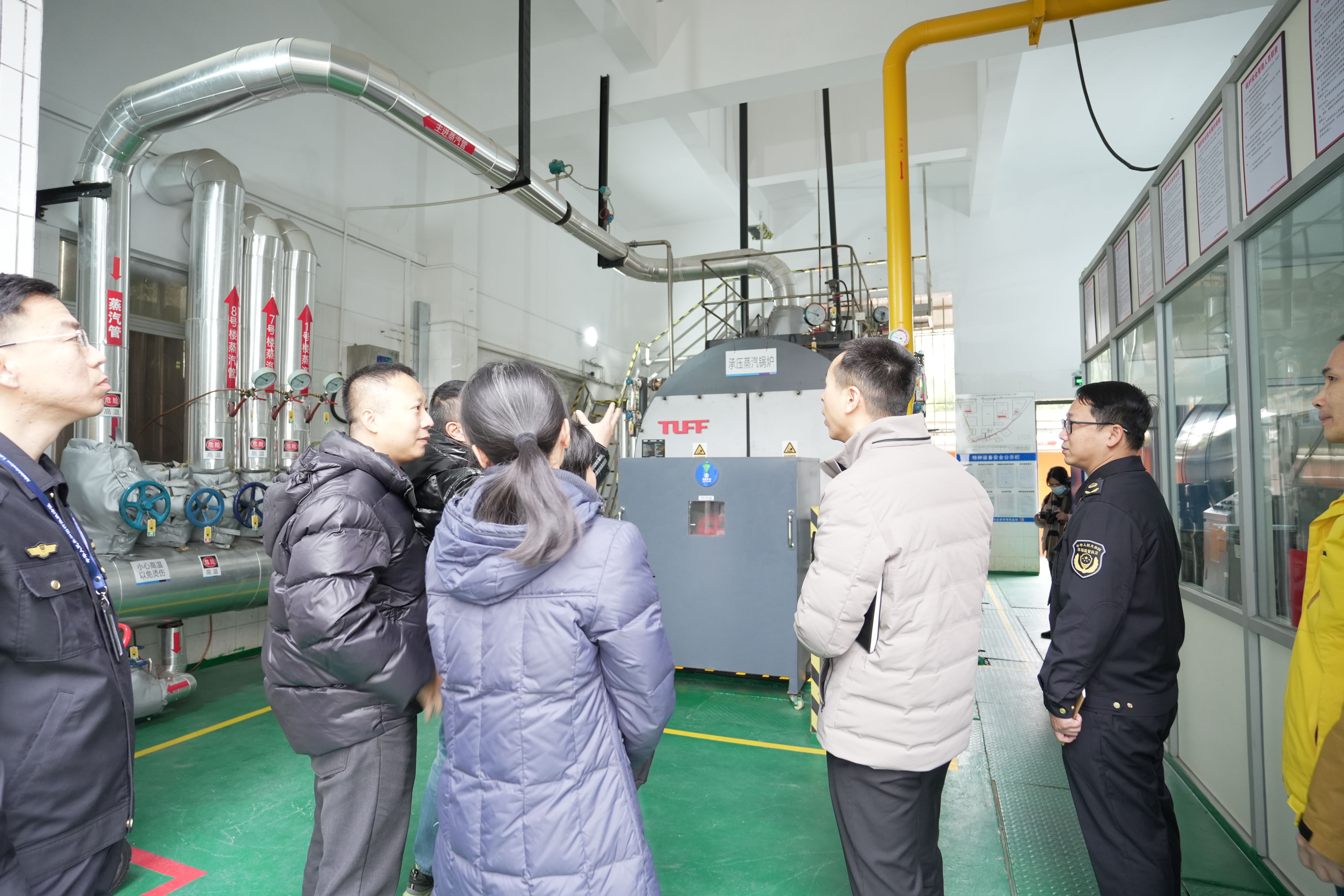会后,陈区长一行旅行了公司医护车间,并实地检查公司锅炉房以及危险化学品酒精库。在锅炉房检查时,陈区长表扬锅炉房在清静检测细节做得很到位,不愧“顺德区五星级锅炉房”的声誉称呼;强调企业清静生产至关主要,春节邻近,要扎实做好节前的清静包管和节后复工复产的清静步伐。清静生产有包管,助推顺峰业绩蒸蒸日上!