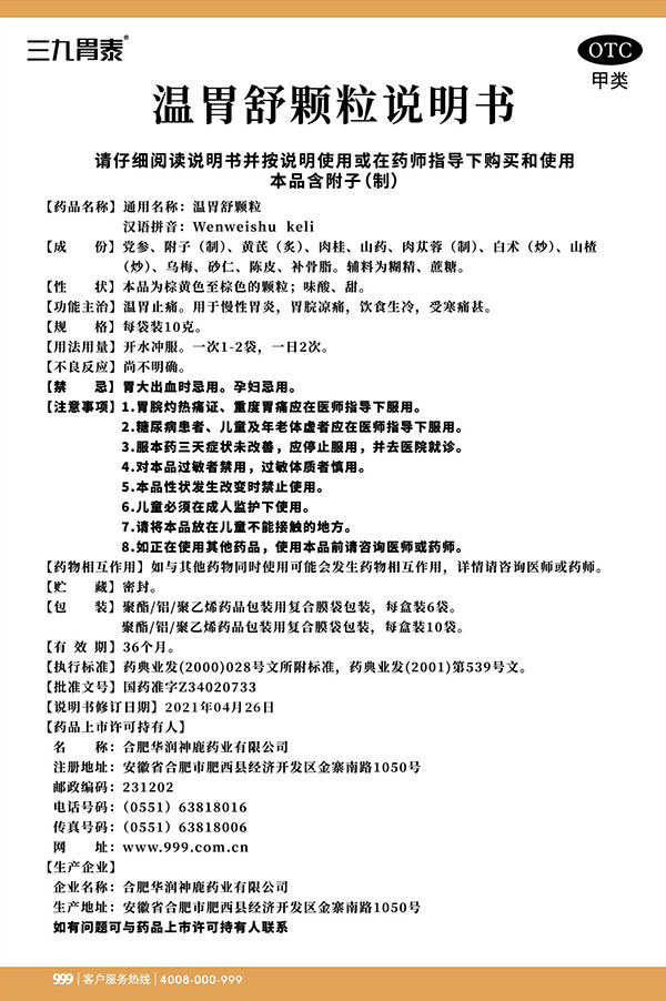 <dt>药品名称</dt><dd>温胃舒颗粒 10g x 6袋</dd>